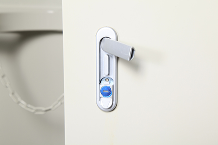 【配 置】工业专用连杆锁*1把,采用车床车制圆钢铰链,经磷化处理,环氧树脂喷涂。左右两侧开线管孔,便于气瓶气管及报警器与相关设备或电源连接;