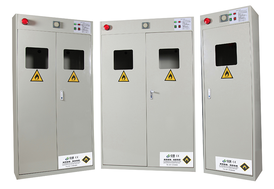 【柜 体】LICHEN 立琛气瓶柜,普通型采用单层1.2mm防火钢板构造。防爆型采用双层1.2mm防火钢板构造,两层钢板之间间隔40mm,绝缘层内填特种防火材料,防火防爆性能更为卓越。柜体采用全焊接,非铆结构使其拥有更长的使用时间,因为减少了空气间隙可在着火时提供更好的防护。本产品具有防爆性能。高质量的双层防爆型气瓶柜符合OSHA 29 CFR 1910.106和NFPA CODE30标准。